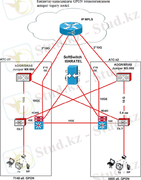 желісін GPON технологиясы негізінде құрастыру болып табылады.