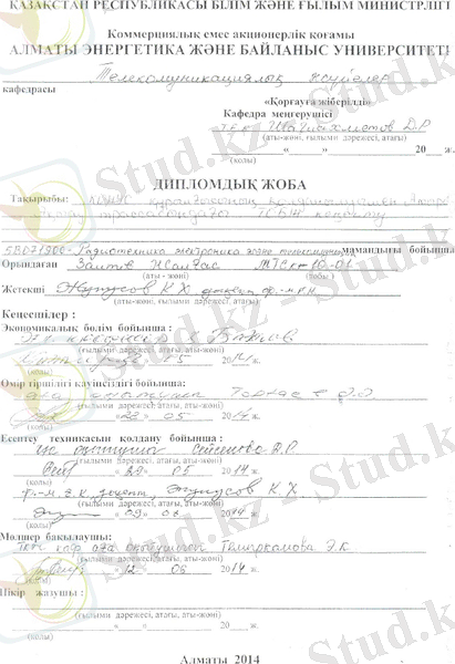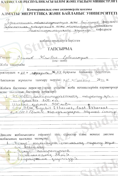 Бұл дипломдық жобада Атырау-Ақтау трассасында талшықты оптикалық