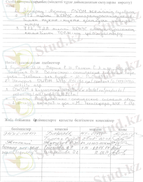 Конус аппаратурасын қолдана отырып Атырау-Ақтау трассасының DWDM талшықты-оптикалық жүйесін кеңейту