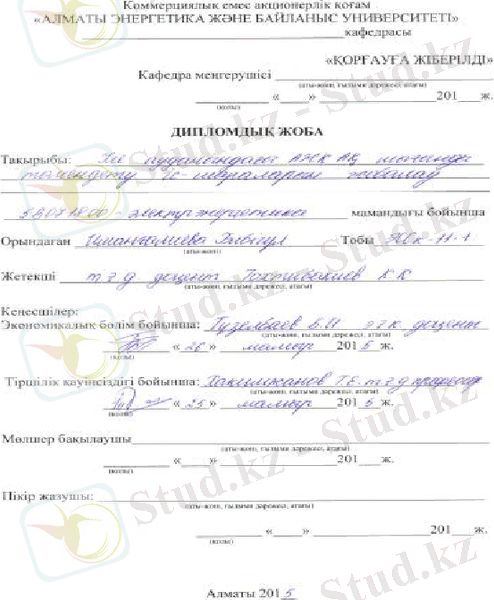 таратушы желілердегі рективті қуатты өтемелеу жүргізілді. Дипломдық
