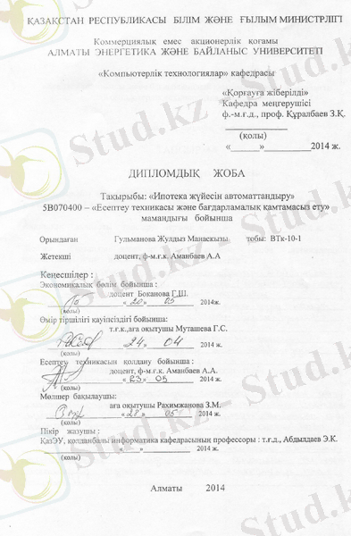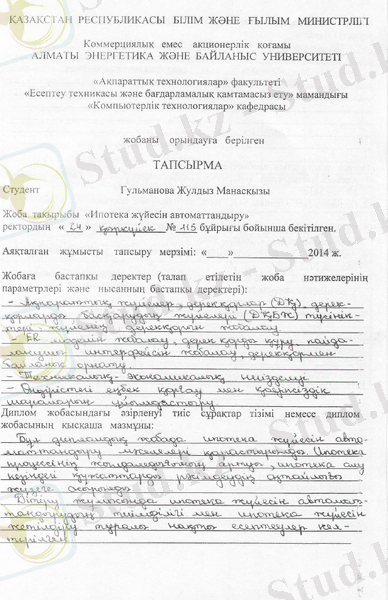 Бітіру жұмысында ипотека жүйесін автоматтандырудың тиімділігі мен