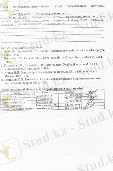 деректер қоры Microsoft SQL Server 2008 R2 негізінде жүргізілген