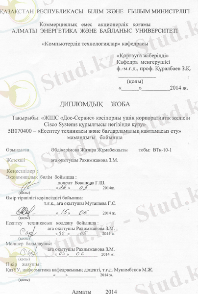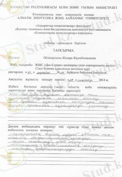Бұл дипломдық жобада ЖШС «Дос-Сервис» үшін Cisco Systems