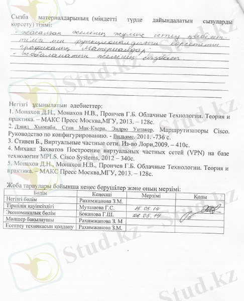 ЖШС Дос-Сервис үшін Cisco Systems құрылғылары негізінде Gigabit Ethernet 1000BaseFX және IP/MPLS магистралі бар мультисервистік корпоративті желіні жобалау және технико-экономикалық бағалау