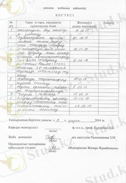 ЖШС «Дос-Сервис» жүйелілік хаттама . . . 35