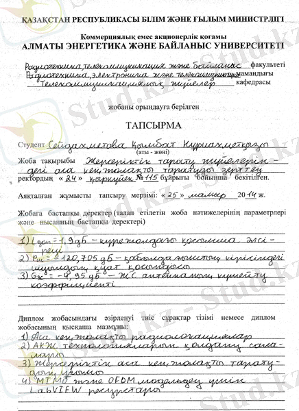 Бұл дипломдық жоба жерсеріктік тарату жүйелеріндегі аса кеңжолақты