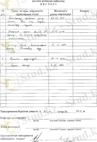 Дипломдық жобаның арнайы бөлімінде мақсаттың орындалуын іске