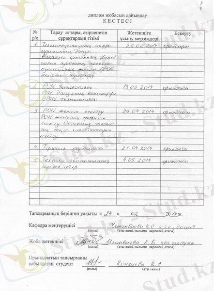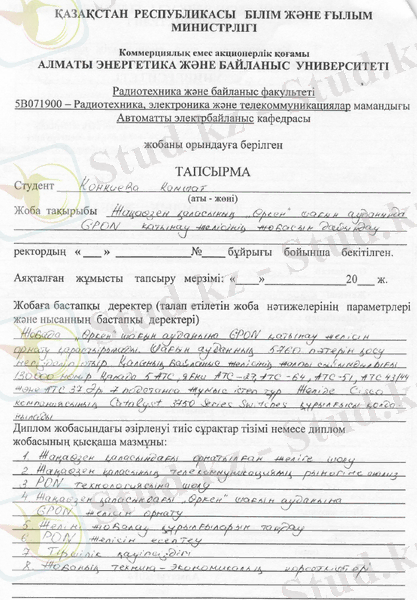 GPON қатынау желісінің жобасын дайындау» тақырыбындағы желі құруға