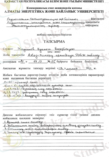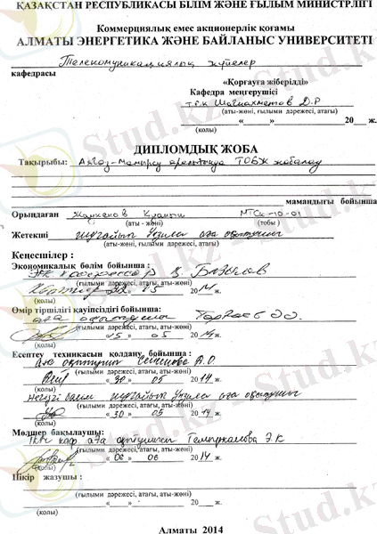 Аягөз-Мамырсу аралығында SDH негізіндегі талшықты-оптикалық магистральдық байланыс желісін жобалау және техника-экономикалық негіздеу