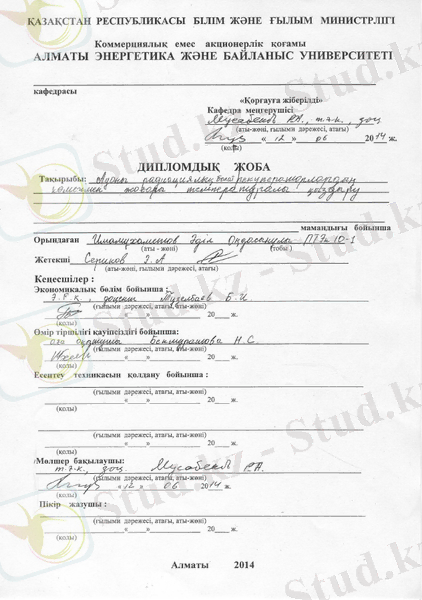 Бұл дипломдық жобада металлургиялық өнеркәсіпте орналасқан