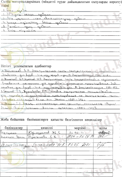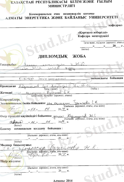 электроэнергетикалық қондырғыларды автоматты басқарудың техникалық