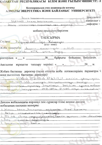 орындалды және ЖТҚ-110 кВ ұяларын қайта құрастыруды қарастырады.