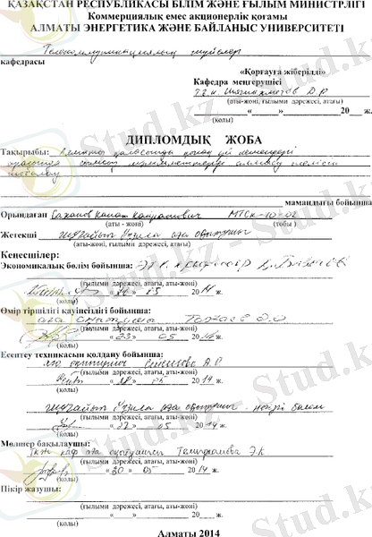 Алматы қаласының қонақ үйлері арасында сымсыз мәліметтер алмасу желісін жобалау және оның экономикалық тиімділігін талдау