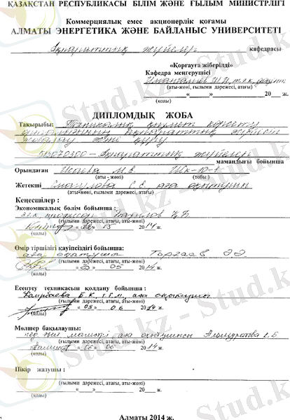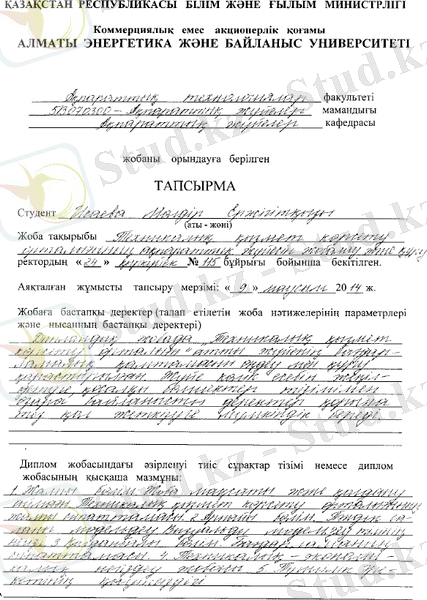 Бұл дипломдық жобада «Техникалық қызмет көрсету орталығы» атты