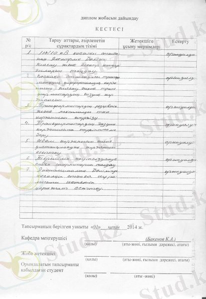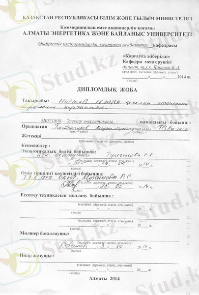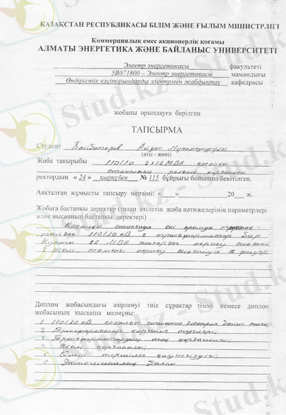 Дипломдық жобаның графикалық бөлімі қосалқы станцияның 5 парақ