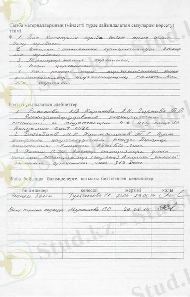 қойылымдары есептелінген. Есептік бөлім А4 форматымен 100 парақ