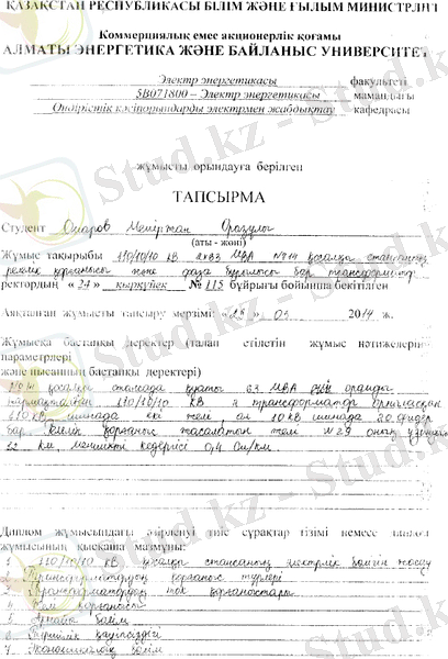 Бұл дипломдық жобада “110/10/10 кВ 2х63 МВА қосалқы стансаның