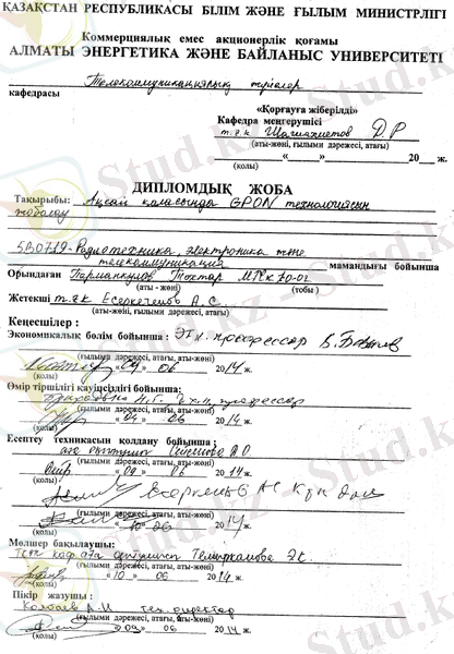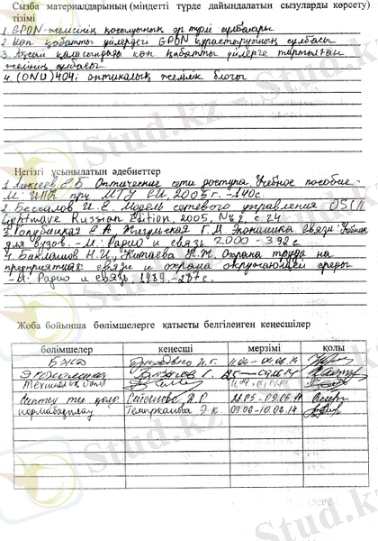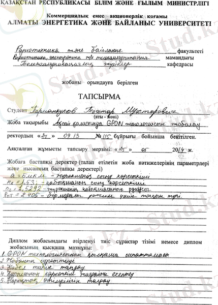 Ақсай қаласының GPON негізіндегі талшықты оптикалық желісін жобалау және техникалық-экономикалық негіздемесі