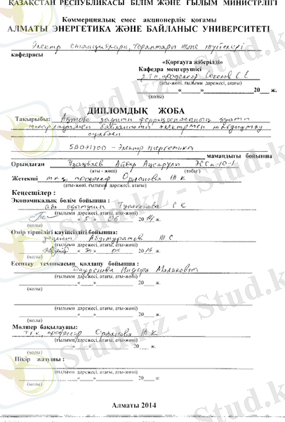 Бұл жұмыста Ақтөбе энерготорабының қазіргі кездегі қуат балансына