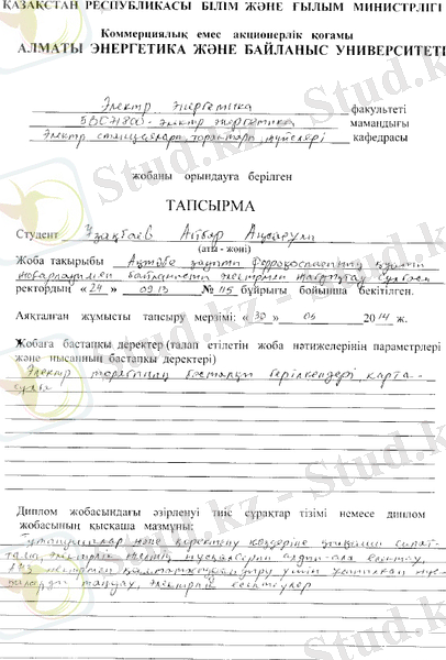 Ақтөбе ферроқорыту зауытының қуатын ұлғайтуға байланысты сыртқы электрмен қамтамасыз ету жүйесін жобалау және технико-экономикалық негіздеу