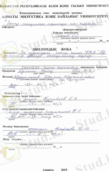 In this thesis project covers the extension of the substation "Otegen Batyr"