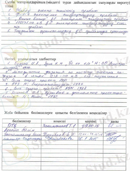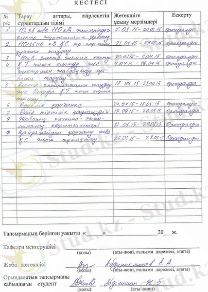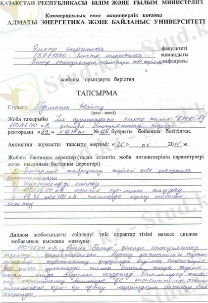 Берілген дипломдық жобада 110/35/10 кВ «Өтеген Батыр» қосалқы