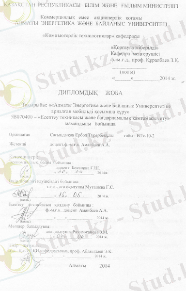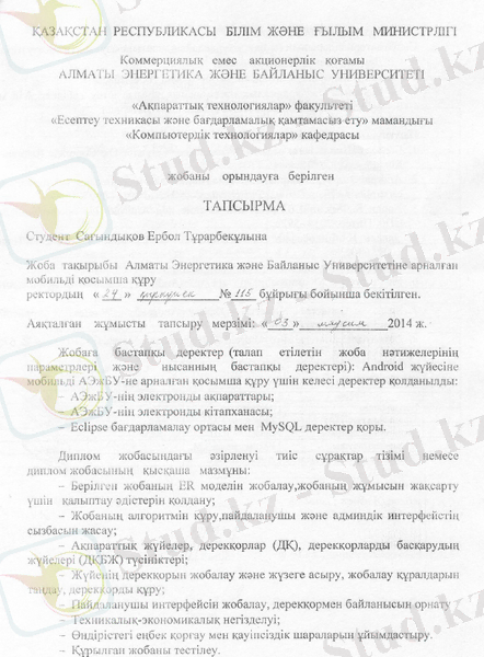«Алматы энергетика және байланыс университетіне арналған мобильді