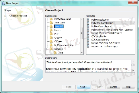 1. 1 суретте Java ME жобасын құру көрсетілген.