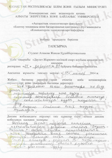 2. 4 Техникалық тапсырма . . . Ошибка!Закладканеопределена.