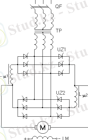 қуатын ескере отырып реверсивті тиристорлы түрлендіргішімен үш фазалы көпірлік