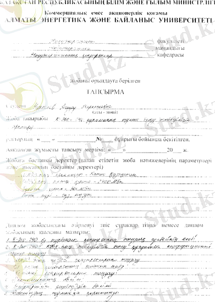 Районная Электростанция) в Западном Казахстане. Согласно заданию