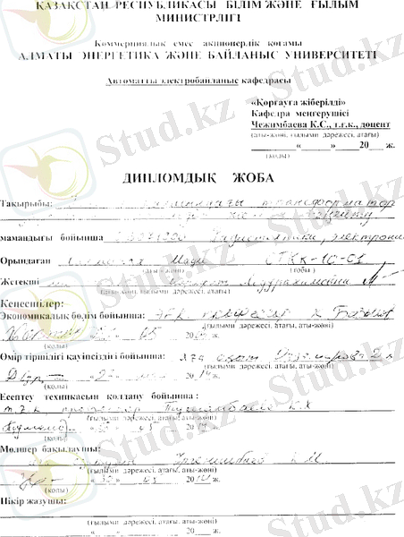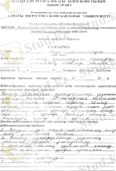 Бұл дипломдық жобаның мақсаты Кентау Трансформатор зауыдының