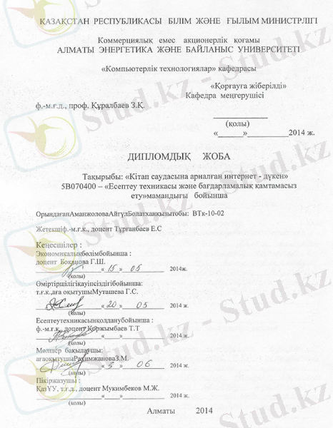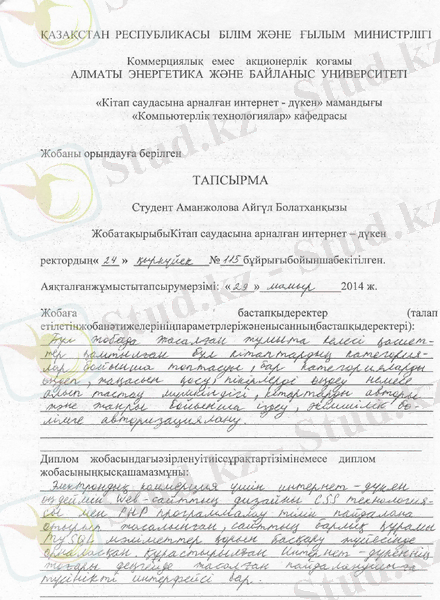 Менiң дипломдық жобамды электрондық коммерция үшiн интернет-