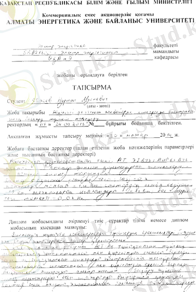 электржетегінің басқару жүйесінің синтез параметрлері