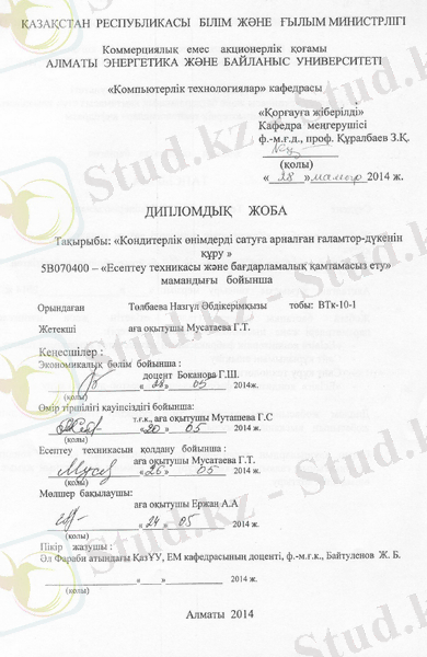 Бұл дипломдық жобада сатып алушылардың талаптарын