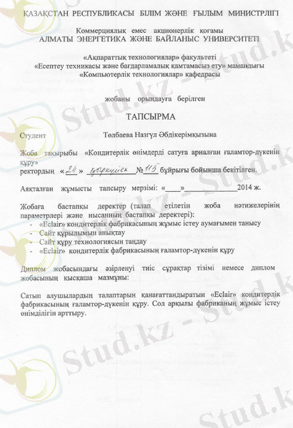 Eclair кондитерлік фабрикасының ғаламтор-дүкенін жобалау және іске асыру
