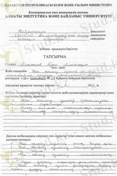 Бұл дипломдық жобада жеке жылыту пунктін сымсыз технологиялар