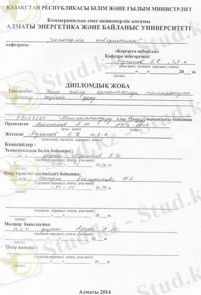 келтірілген. Орындалған жұмыстың экономикалық тиімділігі анықталды.