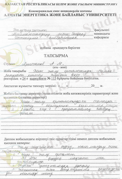 Жеке жылу орталығында температураны автоматты реттеу жүйесін жобалау: техникалық, экономикалық және қауіпсіздік аспектілері