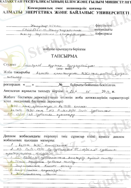 Осы диплом жұмысында Ақтөбе жылу электр орталығын қалпына