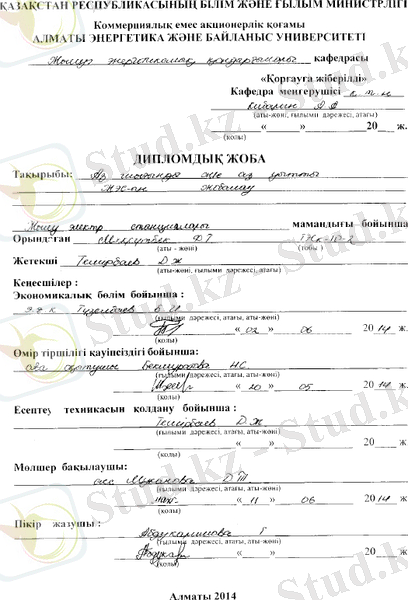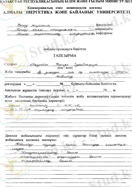 Дипломдық жобада жылуэнергетиканың негізгі үнемиеттік пен мекен
