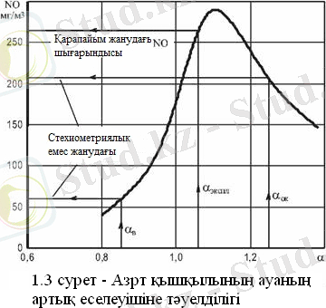 коэффициентінің артуы салдарынан NOx -тің нормалық мәніне жете