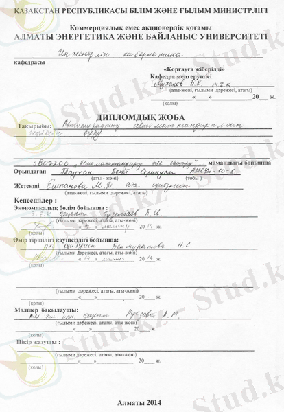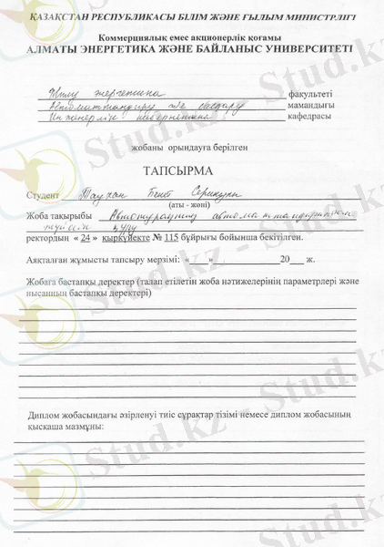 Бұл дипломдық жобада автокөлік станциясының автоматты жүйесі