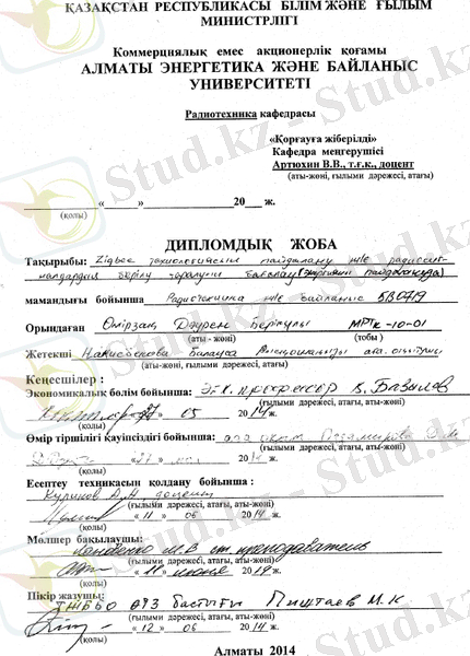 қарастырылған. ZigBee технологиясының 802. 15. 4 стандартының негiзiнде