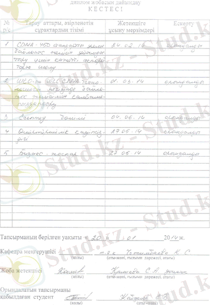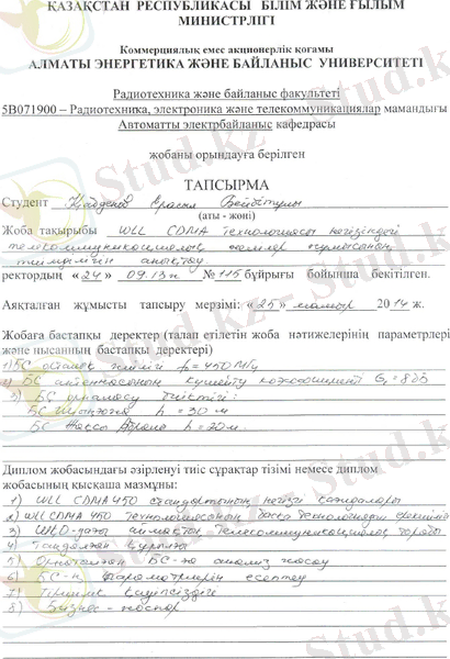 Бұл дипломдық жобада WLL CDMA 450 МГц технологиясының басқа