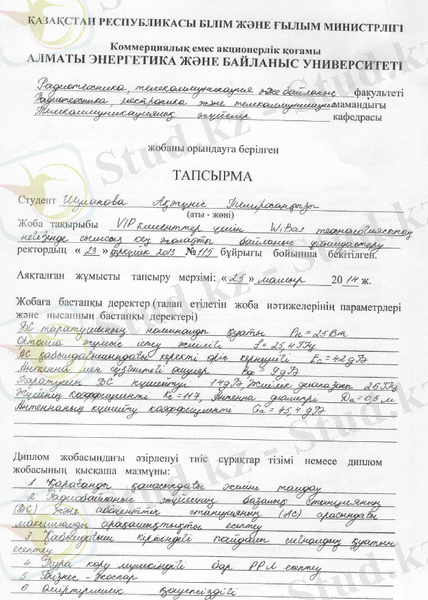 Берілген дипломдық жобада кең жолақты сымсыз байланыс