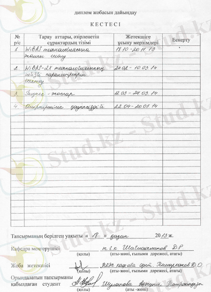 2 WІBAS-2Х ТЕХНОЛОГИЯСЫНЫҢ НЕГІЗГІ ПАРАМЕТРЛЕРІН