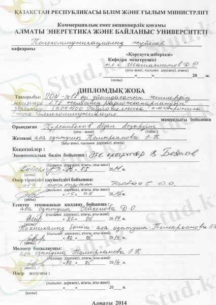 SON (өзін-өзі ұйымдастыратын желілер) негізіндегі LTE желісін радиожоспарлау және оңтайландыру: Талдықорған қаласы мысалында