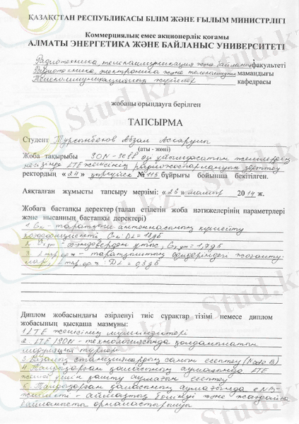 желілердің негізінде LTE желісінің радиожоспарлануын зерттеу.