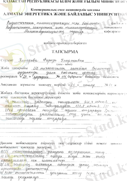 Бұл дипломдық жобада LTE технологиясы көмегімен ұялы байланысты